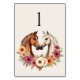 Guie seus convidados em estilo com esses números elegantes de tabelas, projetados para complementar seu tema moderno de casamento country Western. Apresentando uma elegante design de cavalos do campo abraçando dentro de um arranjo floral colorido em forma de coração, esta coleção simboliza amor, harmonia e unidade — perfeita para um casamento country-oeste com encanto rústico.