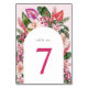 Guie seus hóspedes em estilo com nosso elegante Número da Tabela de Chás de fraldas Tropicais, projetado para complementar seu tema de chá de fraldas tropical. As luxuosas folhas verdes de palma e monstera, magenta vívida e orquídeas fuchsia, e delicadas flores cor-de-rosa pinceladas adicionam um toque romântico e moderno às suas configurações de mesa, garantindo que cada detalhe esteja perfeitamente sincronizado.