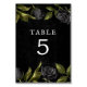 Número da tabela gótica e vintage para um chá de panela com ilustração de rosas pretos. Perfeito para um chá de halloween!