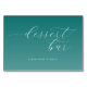 This elegant wedding tabletop sign features a gradient background transitioning from deep teal to lighter turquoise, creating a fresh and inviting atmosphere. The phrase "dessert bar" is written in an elaborate cursive script, while the call-to-action "PLEASE TAKE A TREAT!" is displayed in a simple sans-serif font below, ensuring clarity and charm. The minimalist design focuses on typography, with ample negative space enhancing its modern aesthetic. Perfect for guiding guests to a delightful dessert selection at your event, this sign exudes a welcoming and cheerful vibe.