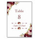 Numeração De Mesa Chic Burgundy Marsala Casamento Floral NÚMERO DA T