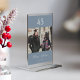 Melhore a decoração do casamento com o nosso número da mesa de casamento com o Chic Dusty Blue e White Hand Lettered. Esta elegante placa de mesa apresenta nomes personalizados em uma sofisticada fonte branca, escrita à mão, acrescentando um toque de classe ao seu dia especial. O número da tabela e a data são lindamente reproduzidos na tipografia sans-serif branca, garantindo clareza e estilo. Mostre sua foto favorita em uma orientação horizontal contra um fundo azul empoeirado, criando um design visualmente atordoante e memorável. Perfeito para qualquer tema de casamento, este cartão de mesa personalizado foi concebido para impressionar os seus convidados e elevar a ambição do seu casamento.
