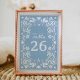 Guie seus convidados com estilo com este Número de Mesa para Chuva de Bebê Blue Cielito Lindo Papel Picado. Projetado com papel picado tradicional mexicano e detalhes em azul suave, é perfeito para uma chuva de bebê de menino com charme cultural. Personalize a cor para combinar com sua celebração! Itens correspondentes em nossa loja Cava Party Design.