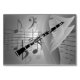 Clarinet com Acentos Musicais. Canvas temática musical moderna, clássica e na moda, com tremendo clave, notas musicais e instrumento musical em destaque; clarinete. Preto e Branco.