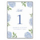 Numeração De Mesa Classic Blue Hydrangea Flower Wedding