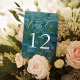 Números da mesa de casamento com Claude Monet Water Lily pintando fundo.