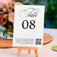Número da mesa de casamento da caligrafia romântica branca e elegante, com código QR para procurar seus convidados para compartilhar suas fotos.