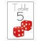 Esta placa de número de tabela personalizada glamourosa apresenta um design de casino vermelho e branco. Uma imagem de dados grandes e vermelhos é impressa no centro sobre um fundo branco. Você pode personalizar o cartão de mesa para incluir seu próprio nome personalizado ou texto.
