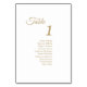 Essa simples placa de números de mesas de caligrafia dourada com hóspedes traz um luxo elegante, mas moderno a uma recepção de casamento ou evento minimalista e mais tradicional ou formal. A caligrafia casual permite um sentimento antigo, enquanto o design neutro de classe pode ser combinado com quaisquer aspectos únicos de sua celebração.