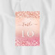 Um rosa de ouro e um fundo cor-de-rosa pincelado, decorado com confete. Personalize e seus números de tabela. O menu de janto correspondente está disponível em nossa loja!