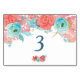 Numeração De Mesa Coral Pink e Aqua Floral WedMesa
