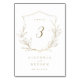 Elegante ilustração à mão de folhas botânicas rusticas com escrita moderna e fonte clássica em dourado e branco, Simples e sofisticado. Ótimos cartões de mesa para casamento moderno clássico, casamento formal simples, casamento elegante no jardim botânico.