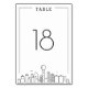 Uma tabela de casamento única para um casamento acontecendo na bela cidade de Dallas. Ele apresenta um número de tabela simplificado descendo sobre uma versão estilizada do horizonte único da famosa cidade. Este item faz parte de uma coleção de várias peças maior com itens adaptados a antes, ao dia e após a sua cerimônia de casamento. Alguns outros itens correspondentes a isso incluem: etiquetas de presentes, gráficos de assentos, cartões de escolta e muito mais. Visite o link da coleção ou o arquivo Colorselle para ver mais.