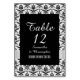 Vintage tradicional elegante, preto e branco, preto e branco, retro damasco, casamento personalizado ou número especial da mesa de ocasião em fundo preto. , personalize com seu texto para os modelos para suas ocasiões especiais ou comemorações. Visite a LOJA PERSONALIZADA _WEDDINGS para produtos correspondentes.