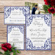 Design de casamento clássico inspirado no 'Delfts Blauw' (Azul de Delft). Celebre o seu dia especial em estilo tradicional holandês! Tons de azul cobalto elegante e floreios ornamentais detalhadamente autênticos emprestam um tom atemporal a qualquer celebração contemporânea.