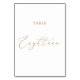 Esta delicada mesa de caligrafia dourada de 18 mesas é perfeita para um casamento moderno. A design romântica minimalista apresenta uma magnífica e elegante tipografia amarela ouro champanhe num fundo branco com um aspecto simples e limpo. A placa impressão na frente e atrás (lado duplo). Os outros números de tabela na coleção são vendidos separadamente.
