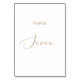 Esta delicada mesa de caligrafia em ouro 7 é perfeita para um casamento moderno. A design romântica minimalista apresenta uma magnífica e elegante tipografia amarela ouro champanhe num fundo branco com um aspecto simples e limpo. A placa impressão na frente e atrás (lado duplo). Os outros números de tabela na coleção são vendidos separadamente.