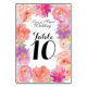 Um belo cartão de mesa perfeito para qualquer ocasião. A design apresenta uma bela combinação de flores aquáticas em rosa, pêssego e matiz roxa.