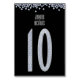 Um na moda e elegante cartão de recepção de casamento número dez em preto e branco com sotaques azuis sutis. Na parte superior da placa estão borrifados com efeito de diamante bonito. Os próprios algarismos também apresentam um efeito de diamante falso. Este cartão de número de tabela também é perfeitamente adequado para as celebrações de aniversário de casamento em Diamond.