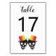 Dois noivos de crânio com arcos em cores arco-íris Cartão de noiva de Halloween gay. Esta design de casamento mostra os crânios de dois noivos com chapéus em cores do arco-íris e o número da mesa.