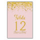 Numeração De Mesa Dourada Confetti | Placa de Mesa rosa do pasto