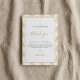 Adicione um toque de luxo à sua recepção de casamento com este obrigado personalizado, suas placas de mesa, com um fundo branco elegante e um padrão sofisticado de folhas de fenda dourada. Cada carta é elegantemente desenhada com uma escrita graciosa e uma tipografia moderna, criando uma atmosfera refinada, perfeita para a família e os amigos. Coloque esses cartões em cada configuração de mesa para expressar sua sincera gratidão e fazer com que cada convidado se sinta especial personalizado com nomes individuais e mensagens de apreciação. O efeito do ouro impresso empresta um olhar chico, glamouroso, ideal para uma celebração de na moda honrando sua nova jornada.
