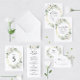 Um adorável design verde e ouro com flores brancas pintadas de aquarela. O texto e as cores deste cartão podem ser personalizados.