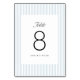 Elegant wedding table card features graceful typography design that blends classy script and modern sans serif font on dusty blue stripes background, simple and unique, great for traditional vintage wedding, modern classic wedding and boho retro wedding,