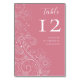 Esta elegante placa de casamento com número de mesa apresenta um delicado design floral ornamental com flores, pássaros e folhas sobre fundo rosa empoeirado. O texto combina o script manuscrito e as fontes serif para uma aparência na moda e moderna. Perfeito para um casamento outono de inverno ou outono.