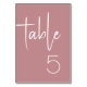 Números modernos da mesa elevam a decoração da mesa da recepção de casamento. O design apresenta uma fonte elegante em branco sobre um fundo empoeirado de tom de rosa perfeito para um evento de casamento outono ou banquete. Solicite cada número de tabela da coleção ou edite este cartão para cada número necessário. A design é impressa em ambos os lados.