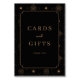 This elegant wedding tabletop sign features a sophisticated black and gold color palette, creating a luxurious contrast. The design showcases intricate celestial motifs with sunburst patterns and stars, arranged in a balanced grid layout around the edges. Central to the design is a clean rectangular frame with "CARDS and GIFTS" written in an uppercase serif font, complemented by a smaller cursive script for "and," followed by "THANK YOU" in a refined serif typeface. The overall style blends classic elegance with modern minimalism, perfect for expressing gratitude at your special event.