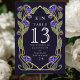 Capture timeless elegance with this Art Nouveau-inspired Table Number! Featuring blue peonies, leaves against an indigo background, this design sets the tone for a sophisticated celebration. Perfect for weddings, galas, and milestone events! Please note that the gold on this product is NOT real foil; it is printed flat. ATTENTION: Items are printed exactly as they appear on your screen when you add them to the cart, so personalize and add each table number you need to your cart individually.