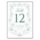 Numeração De Mesa Elegant Green Ornate Floral Frame Wedding
