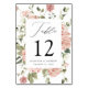 Numeração De Mesa Elegante Blush Rosas e Greenery Wedding