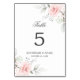 NÚMEROS DE MESA DE casamento Simplesmente elegantes NÚMEROS DE MESA florais simples de design em cor d'água (cor d'água) verde pastel, cor-de-rosa-pincel, rosa, rosas de flores brancas/flores de cereja em fundo branco e letras de cinza escuras. Consulte produtos correspondentes na suíte SAVANNAH.