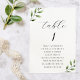 Cartão de número de tabela de assentos de casamento personalizado, com design de folhagem verde elegante moderna, com número de tabela personalizado e nomes.