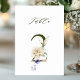 Esta placa de números de tabela apresenta um número de ouro verde e rosa, decorado com ilustrações de cor d'água de flores e folhas em branco, marfim, violeta azul e verde. Este número de tabela é perfeito para casamentos, graduações, chás de fraldas, chás de panela, aniversários e outros eventos. Mesa 2. Verifique todos os números disponíveis.