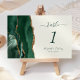 A borda esquerda desta elegante e moderna carta de números da mesa de casamento apresenta uma esmeralda verde aquarela agate borda com falsa brilho dourado. O texto personalizável combina letras verdes, letras itálicas e letras de impressão em um fundo de marfim.