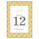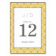 Cartão de mesa elegante com padrão amarelo e cinza em escala de peixe. Cartões de casamento, cartas de agradecimento, favores de casamento, etc... © Mood 4 Cute