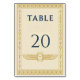 Um cartão de número de mesa sofisticado inspirado no Egito, apresentando um símbolo de escaravelho dourado e uma borda dourada clássica com padrões intrincados de hieróglifos. O número é editável, oferecendo flexibilidade para qualquer mesa. Perfeito para um casamento elegante com tema egípcio e combina perfeitamente com nossos cartões de lugar, menus e gráficos de assentos.