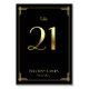 Excelente Gatsby Art Deco cartões de números da tabela de casamento com ouro número 21 e texto personalizável, onde você pode adicionar seus nomes e data de casamento, impressos em fundo preto