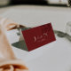 Classy and fancy wedding place card designed for a clean and elegant old money reception table setting. This folded escort card features a handwritten script wedding name paired with contemporary typography. The burgundy deep redand cream wedding decor adds a fresh, stylish touch to your wedding. Perfect as a custom guest name card for a chic and simple wedding celebration. Use this elegant folded place card to elevate your modern reception table decor. A sophisticated contemporary wedding table card that complements any minimalist wedding theme.