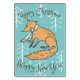 Aconchegante decorativo design de raposa de Natal feliz em fundo azul.
