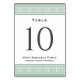 Crie cartões de número de tabela personalizados para seu evento especial. A tipografia clássica e uma fronteira chave grega conferem elegância ao eterno para a sua celebração. Inspirado pela antiga arte grega e romana, o design geométrico cria um padrão na moda, semelhante ao labirinto. Personalize o modelo com o número da tabela, o nome e os detalhes do evento. A design é elegantemente repetida em ambos os lados. Perfeito para uma festa formal de janto, almoço, brunch, aniversário, casamento, gala ou outra ocasião especial. Cores impressas: verde e branco, com cinza escura.