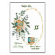 Cartão de Mesa do Tea Party de Alta Tarde para seu Aniversário/Aniversário/Qualquer festa. A ilustração apresenta uma coroa verde com bule de chá e chá confortável. O TEXT pode ser facilmente personalizado com sua escolha de palavra & script.