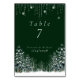 Casamento no inverno Pine Trees Snowflakes A placa de número tem um belo fundo verde escuro com cobertura de neve, Pine Trees, árvores brancas de inverno, flocos de neve e efeito de brilho suspensivo bonito. Personalize com suas informações.
