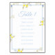 A bright and elegant seating chart card featuring blue and yellow floral accents paired with a clear numeric layout. Fresh, airy, and beautifully balanced, this design brings a soft botanical feel while keeping table numbers easy to follow for guests.