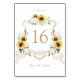 Floral Elegante Girassóis Brancos Hidrégia Dourada Crest Table Number