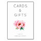 Este sinal de mesa de casamento apresenta um design minimalista e elegante com peônias rosa suave no centro, acentuadas por folhas verdes. A tipografia limpa e sem serifa destaca "CARTÕES & PRESENTES" no topo e "obrigada" abaixo da ilustração floral, criando uma estética serena e harmoniosa. Com seu minimalismo moderno e subtis nuances românticas, este sinal é perfeito para expressar gratidão de forma refinada, tornando-o uma adição ideal a qualquer celebração de casamento.