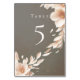 Adicione um toque de elegância às mesas do seu casamento com este cartão de número de mesa taupe com gráficos florais suaves. As flores sutis e o tom taupe sofisticado criam uma estética refinada, perfeita para um tema de casamento moderno ou romântico.